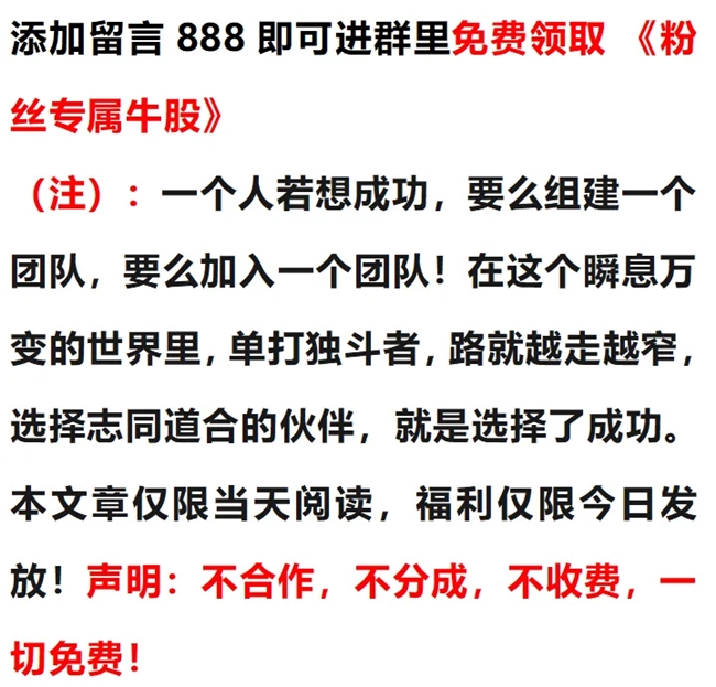 2, 亏损的粉丝优先,如果你是赚钱的,就不要加入圈子了,因为亏损的粉丝比你更需要这次机会,股市是一个充满挑战与机会的地方,实战 通过分享和交流,我们可以更好地把握趋势,实现财富增值!